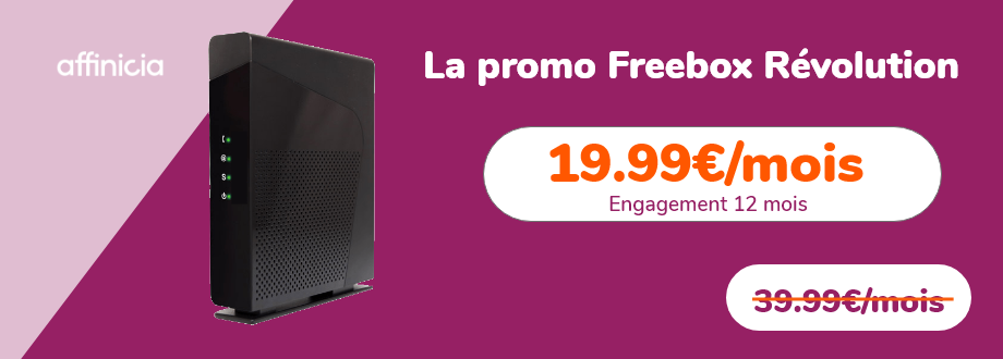 La promo du moment à ne pas louper, c’est la Freebox Révolution affichée à 19,99€ pendant 1 an puis 44.99€. L’abonnement de 12 mois vous laisse la possibilité de changer d’offre une fois l’engagement écoulé.